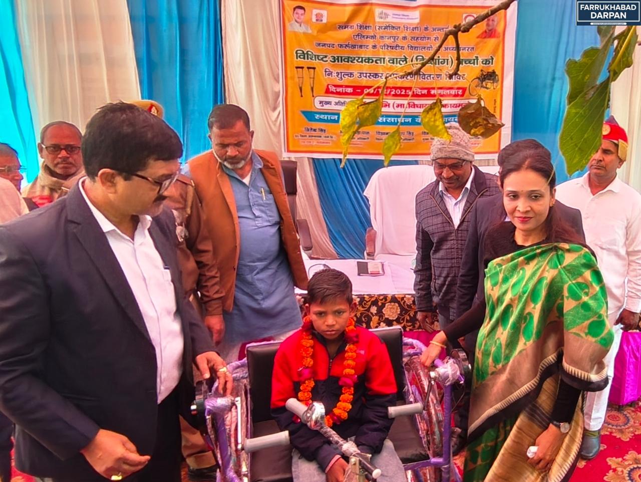 जनपद फर्रुखाबाद के कायमगंज क्षेत्र के गांव घसिया चिलौली स्थित ब्लॉक संसाधन केंद्र में मंगलवार को दिव्यांग बच्चों के लिए निःशुल्क उपकरण वितरण शिविर का आयोजन किया गया। यह कार्यक्रम समग्र शिक्षा एवं समेकित शिक्षा के तहत एलिम्को कानपुर के सहयोग से किया गया। शिविर का उद्घाटन जिलाधिकारी आशुतोष कुमार द्विवेदी और क्षेत्रीय विधायक डॉ. सुरभि गंगवार ने संयुक्त रूप से किया। इस मौके पर बड़ी संख्या में अभिभावक व बच्चे मौजूद रहे। 129 बच्चों को मिले 136 उपकरण — बच्चों के चेहरों पर दिखी खुशी शिविर में कायमगंज, शमशाबाद