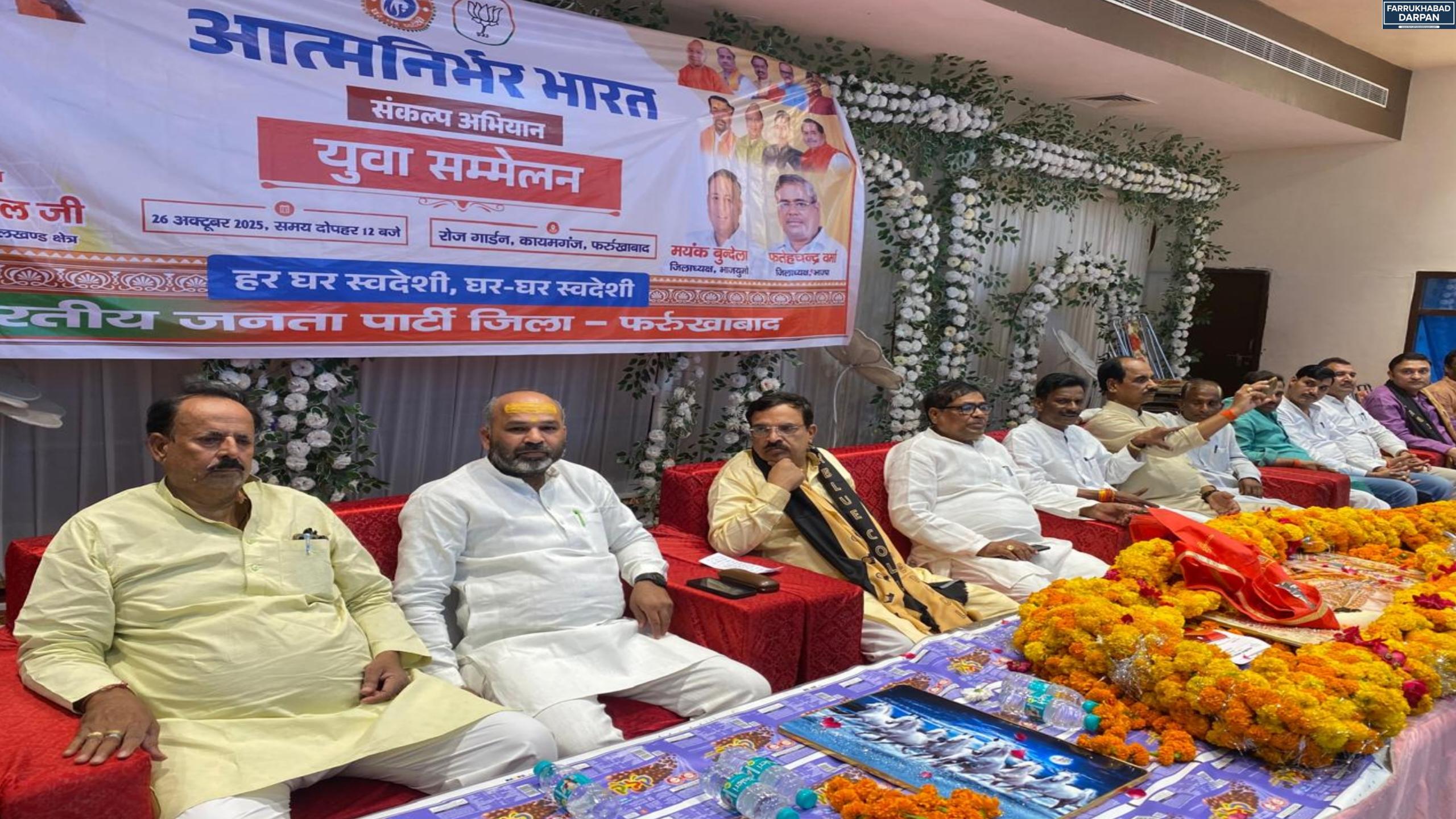कायमगंज नगर के कम्पिल बाईपास रोड स्थित रोज गार्डन में भारतीय जनता पार्टी युवा मोर्चा की ओर से “आत्मनिर्भर भारत – हर घर स्वदेशी, घर-घर स्वदेशी” अभियान के तहत युवा सम्मेलन आयोजित किया गया। इस कार्यक्रम में बड़ी संख्या में युवा कार्यकर्ता और पदाधिकारी शामिल हुए।