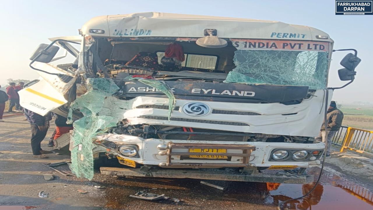 इटावा–बरेली हाईवे पर मंगलवार सुबह करीब 7:30 बजे बड़ा सड़क हादसा हो गया। फर्रुखाबाद–शाहजहांपुर मार्ग पर तेज रफ्तार डंपर ने ओवरटेक करने के दौरान ट्रक में जोरदार टक्कर मार दी। टक्कर इतनी भीषण थी कि आसपास अफरा–तफरी मच गई और दोनों वाहन बुरी तरह क्षतिग्रस्त हो गए।